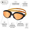 El proceso de diseño con tecnología 3D permite que las gafas Ozean disminuyan la superficie de resistencia al agua y, por lo tanto, mejoren la estabilidad de las gafas en todas las condiciones. El diseño hidrodinámico de las Ozean las convierte en las gafas ideales para las competiciones y entrenamientos de triatlón donde se está más expuesto a recibir golpes que hagan saltar las gafas de la cara.